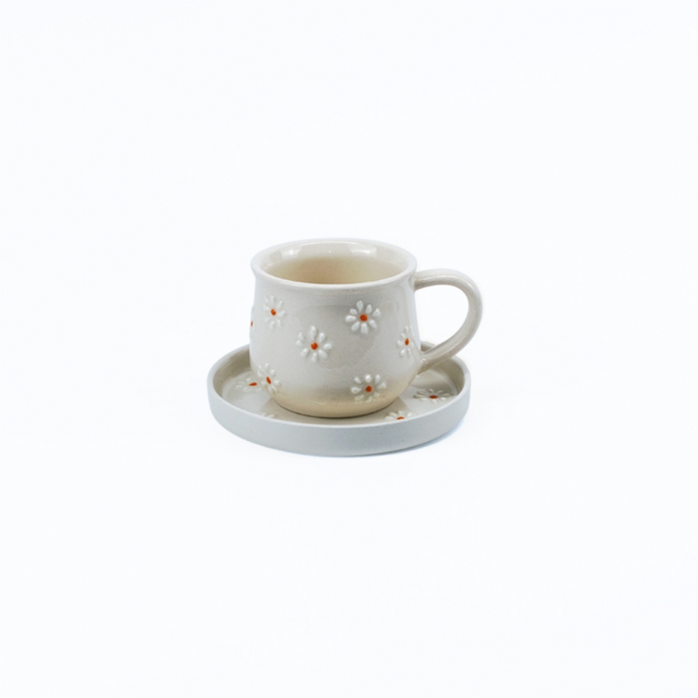 Minimal ve şık tasarımıyla öne çıkan Papatya Dokunuşlu Fincan, sıcak içecek anlarınıza zarif bir hava katıyor. Yumuşak krem rengi üzerine yerleştirilmiş kabartmalı papatya desenleri, takımın sade güzelliğini vurgularken doğal bir enerji hissi yaratır.