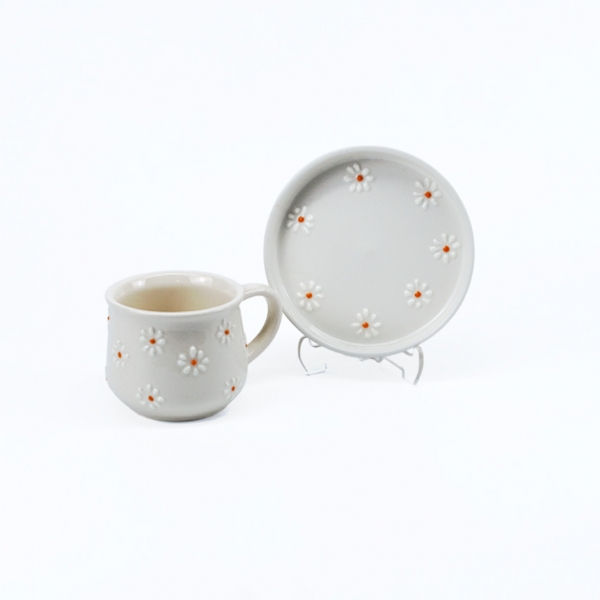 Kupa ve tabak uyumuyla günlük kullanım için ideal olan bu set, hem estetik hem de işlevsel bir seçenek arayanlar için tasarlandı. Göz yormayan deseni ve sade çizgileriyle her ortamda kolayca uyum sağlar.