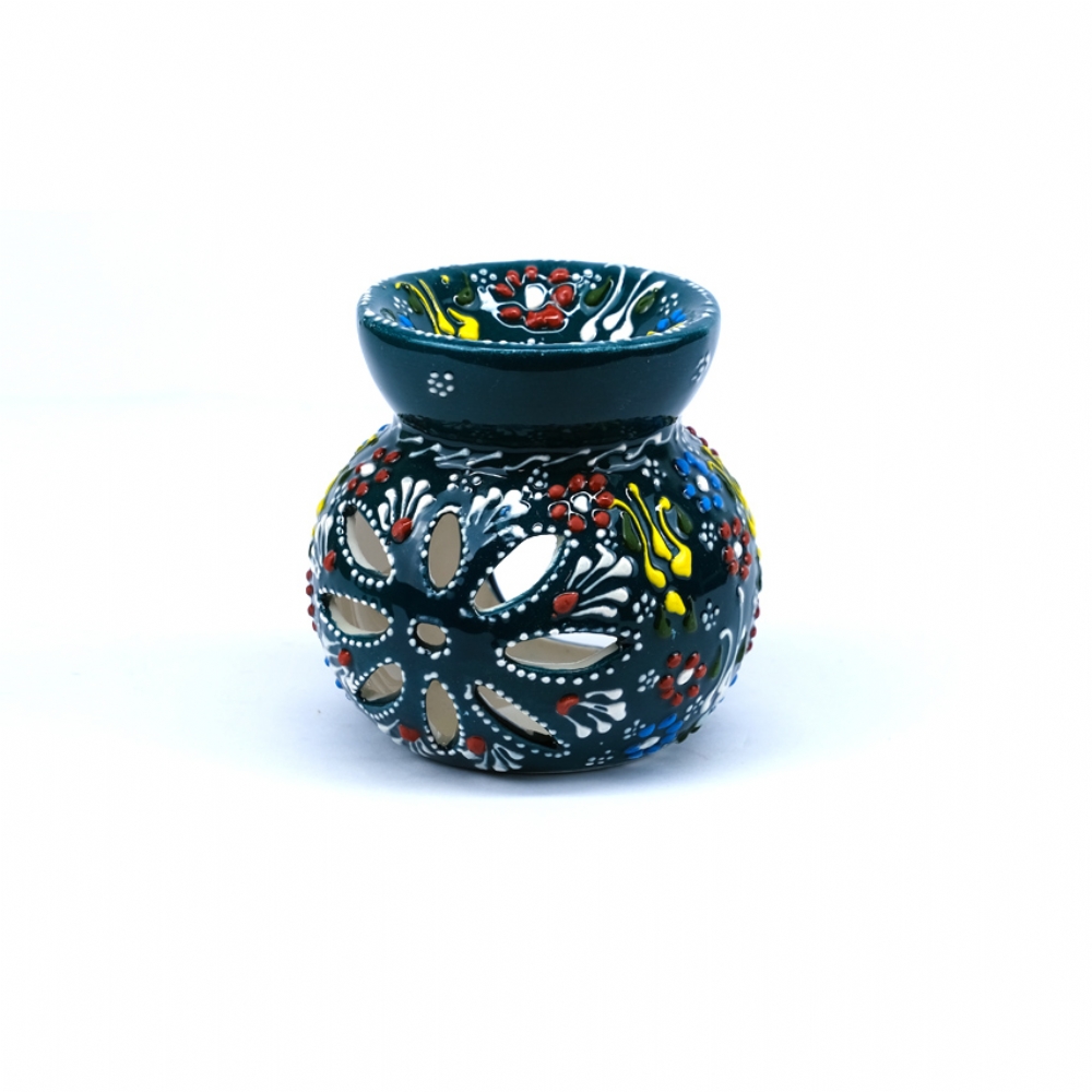El yapımı çini buhurdanlıklarımızda ana zemin rengi korunurken üzerindeki motiflerin desen ve renklerinde farklılıklar oluşabilir.Her parça kendine özgüdür.