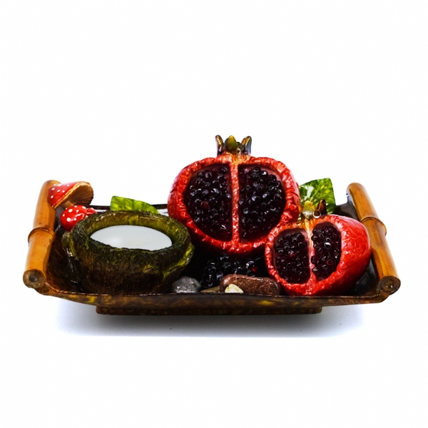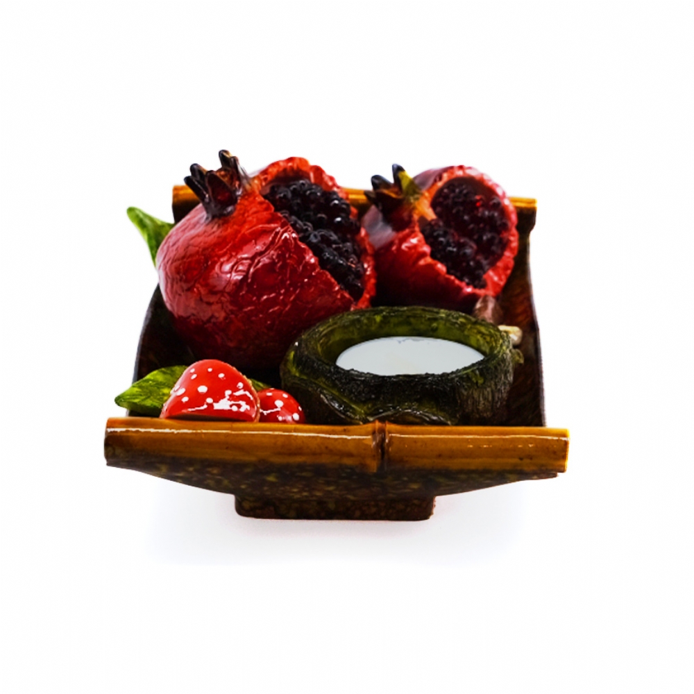 Bu Nar Temalı Dekoratif Mumluk, bereket, şans ve zenginliği simgeleyen canlı figürleriyle evinizin enerjisini yükseltmek için tasarlandı. Bambu kenarlı koyu, rustik zemin üzerinde; canlı kırmızı renkte iki adet bölünmüş nar figürü, mantar ve yaprak detayları yer alıyor. Nar tanelerinin gerçekçi görünümü ve zengin renkler, bu mumluğu özellikle sonbahar ve yeni yıl dönemi dekorasyonları için çarpıcı bir odak noktası haline getiriyor.